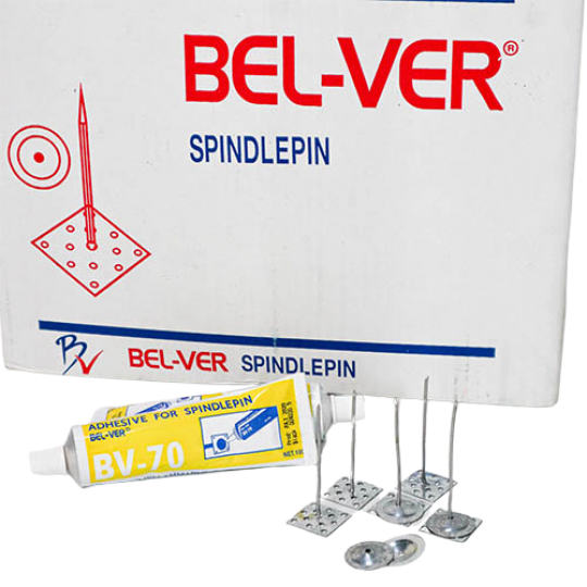 Spindle Pin merupakan alat berukuran kecil yang berbentuk mirip paku yang dilengkapi dengan lem khusus, yang umumnya digunakan untuk merekatkan dan melekatkan material peredam suara dan insulasi seperti Rockwool dan Glasswool.